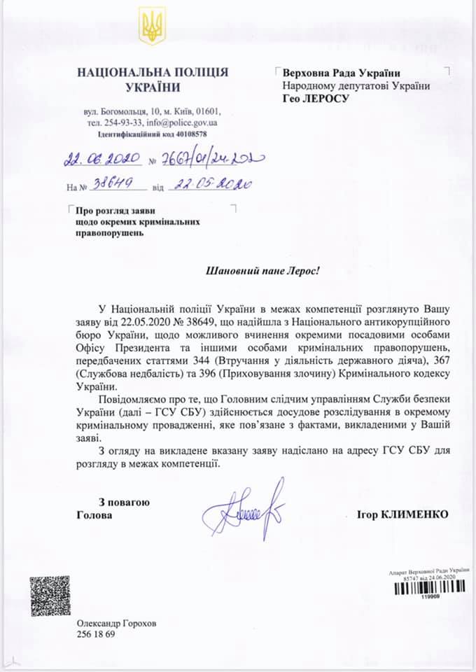 По его словам, оказывается, факты коррупции в КГГА и Офиса президента расследуют в рамках уголовного производства в СБУ.