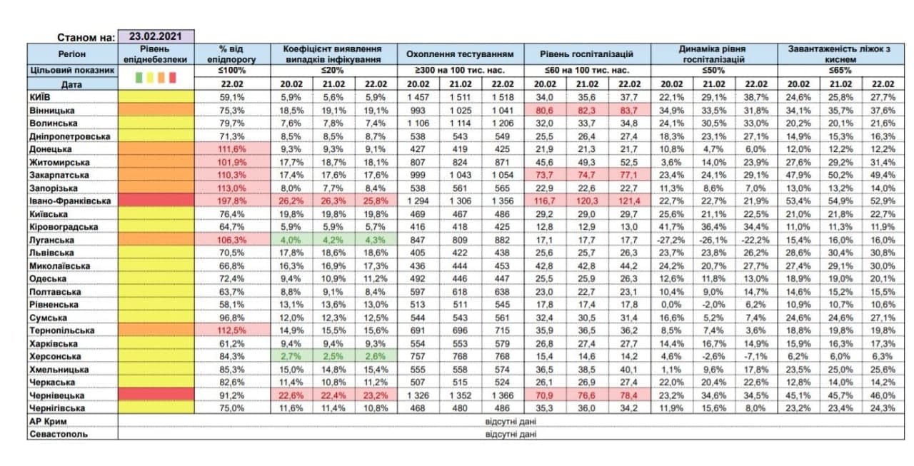 Семь регионов оказались в «оранжевой» зоне: Винницкая область, Донецкая область, Житомирская область, Закарпатье, Запорожская, Луганская и Тернопольская области. Остальные – в «желтой».