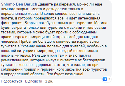 «Приїзд великої кількості іноземців може спричинити спалах коронавірусу. Я сумніваюсь, що паломники матимуть довідки про відсутність covid-19, я не впевнений, що вони пройдуть обсервацію 14 днів і дотримуватимуться усіх вимог адаптивного карантину», — заявив у зверненні мер міста Умані.