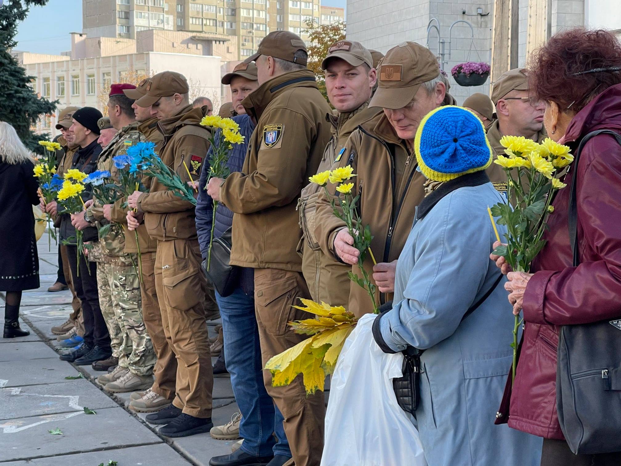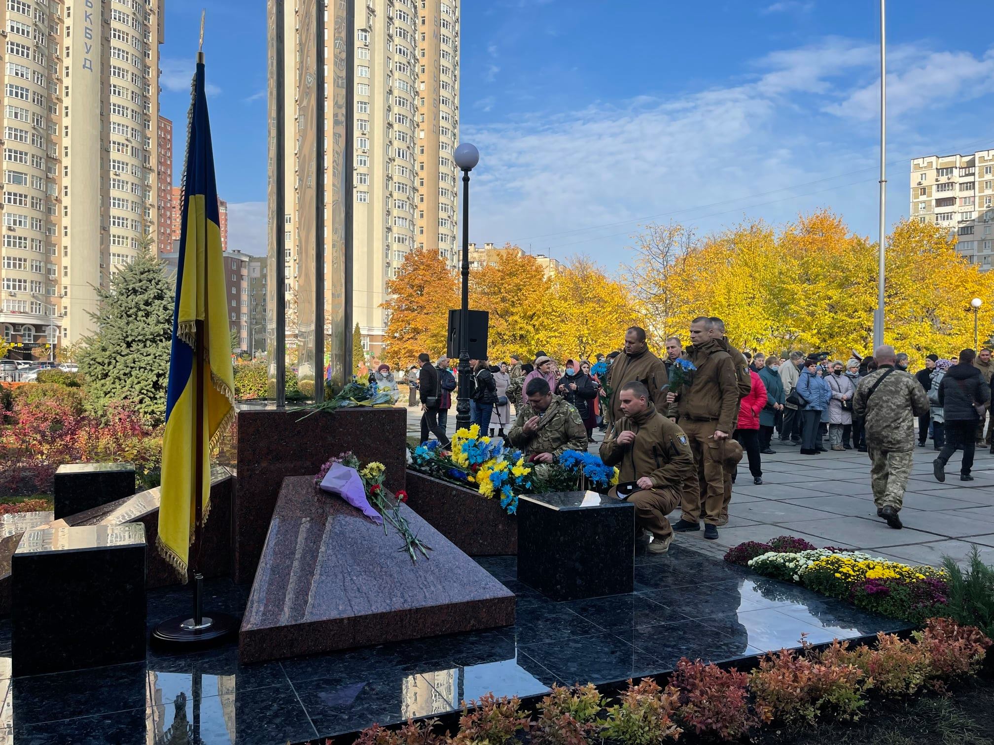 В День защитников и защитниц Украины в в Дарницком районе Киева в сквере им. Александра Кошица открыли памятный знак воинам-героям АТО.