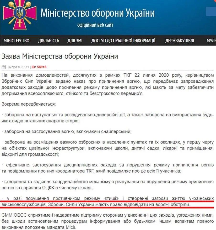 В связи с тем, что противник уже несколько раз нарушил режим «тишины», в заявление Министерства Обороны Украины внесли изменения.