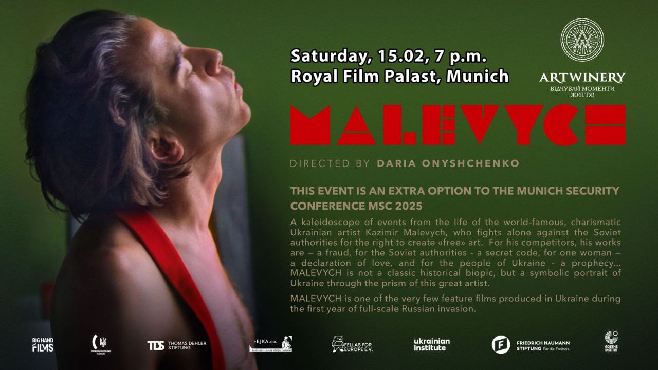 14-15 лютого 2025 року в рамках Мюнхенської конференції з безпеки (MSC 2025) відбудуться дві ключові події, що акцентують увагу на ролі культури в протидії російській агресії та гібридній війні: панельна дискусія «Культура як складова системи безпеки: спростування міфів російської пропаганди» та ексклюзивний показ фільму «Малевич» (Україна, Швейцарія, Італія, Сербія).