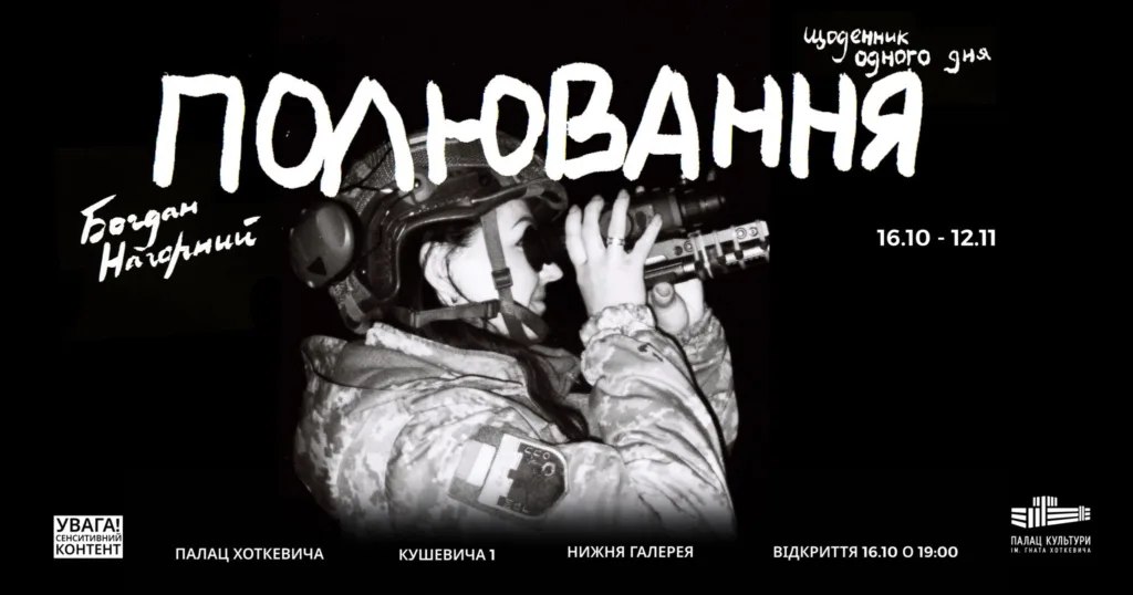 Запрошуємо на відкриття документального фотопроєкту «Полювання. Щоденник одного дня» Богдана Нагорного — 16 жовтня о 19:00 у Палаці Хоткевича, повідомляє Добровольче Формування Переяславської Територіальної Громади.