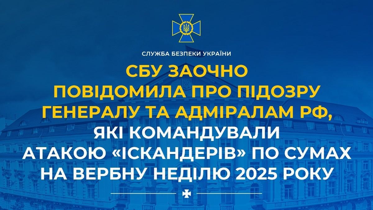 ГУР МО України у взаємодії зі Службою безпеки України встановило та зібрало доказову базу російських командирів, причетних до організації ракетного удару по Сумах 13 квітня 2025 року на Вербну неділю двома балістичними ракетами «Іскандер-М».