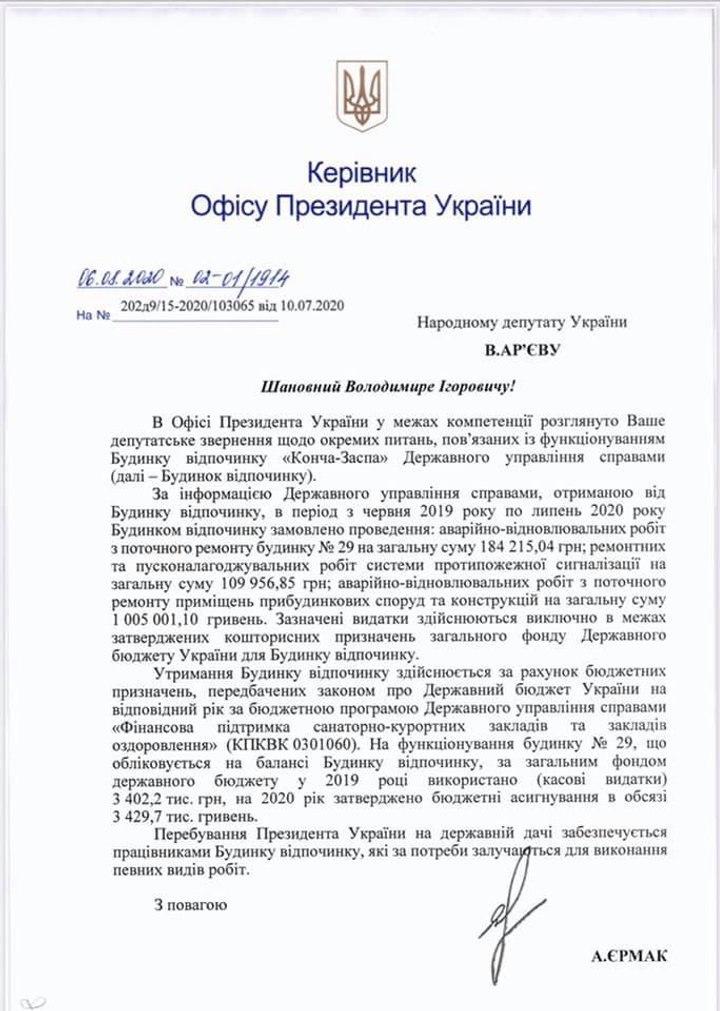 Содержание государственной дачи в Конча-Заспе, на которую в июле этого года переехал президент Владимир Зеленский, обойдется государственному бюджету в 3 миллиона 429 тысяч гривен.
