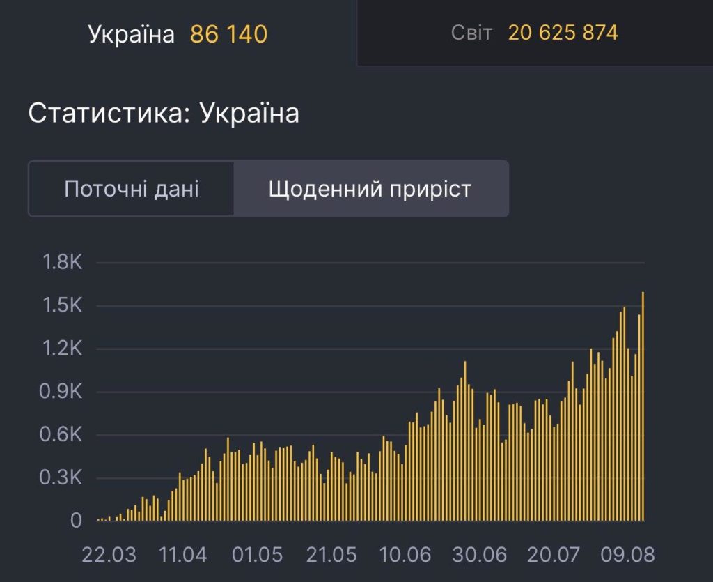 В Украине с начала пандемии зафиксировано 86 140 случаев заболевания коронавирусом, тогда как в Китае этот показатель — 84 756 случаев, по данным сервиса Worldometers.