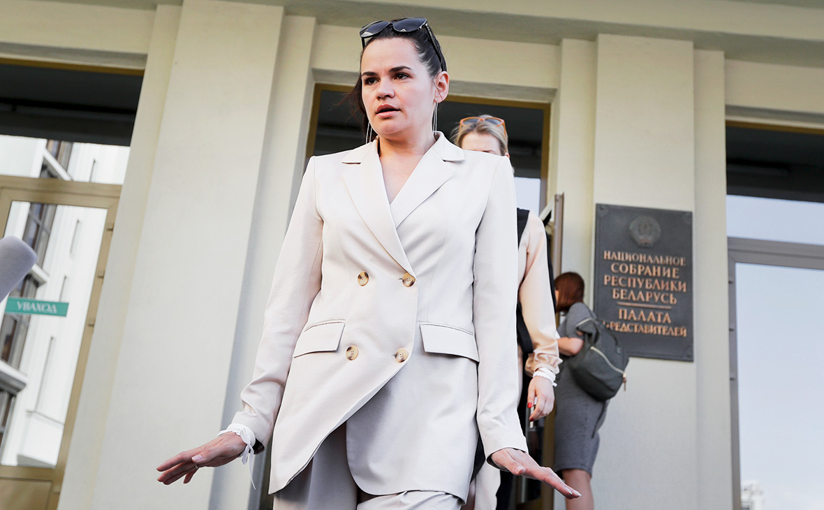 «Я готова взяти на себе відповідальність і виступити в цей період національним лідером, щоб країна заспокоїлася, увійшла в нормальний ритм. Щоб ми звільнили всіх політв’язнів і в найкоротші терміни підготували законодавчу базу і умови для організації нових президентських виборів», — сказала Тихановська.