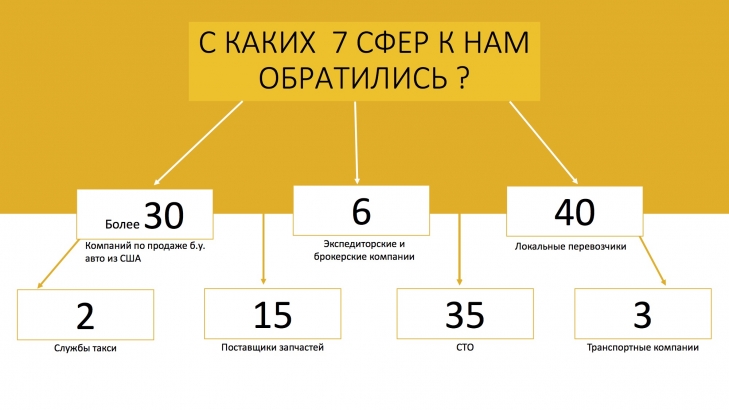 По его словам, ассоциация намерена объединить компании по продаже б/у авто из США, экспедиторские и брокерские компании, поставщиков запчастей, СТО и локальных перевозчиков, а также транспортные компании и службы такси.
