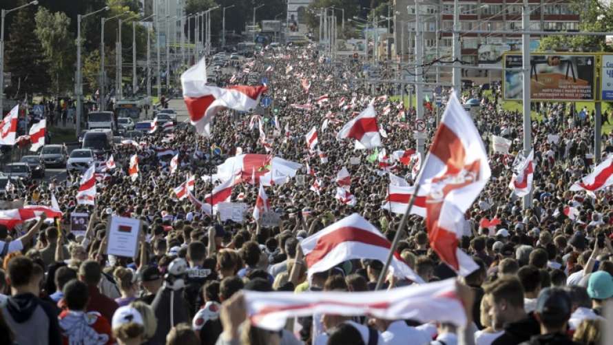 Тем временем у торгового центра «Арена Сити» в Минске снова собралась большая группа протестующих, которым преградил движение ОМОН. Несколько тысяч участников протестов после разгона вновь собрались у ТЦ, от которого идет дорога в элитный поселок Дрозды.