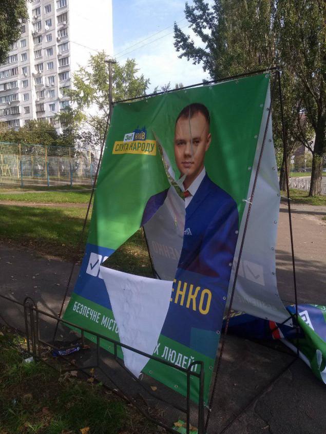 На Оболони неизвестные избивают агитаторов и массово портят агитационные палатки кандидата от “Слуги народа” в Киевсовет Евгений Кузьменко (№10 Оболонского списка). По этим инцидентам уже подано заявление в Нацполицию, а доверенные лица кандидата сфотографировали хулиганов.
