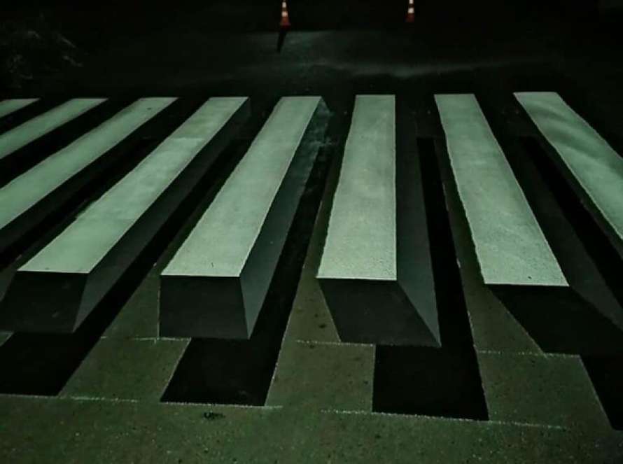 На фото, которое опубликовал Жеман, изображён пешеходный переход в стиле 3D. Рисунок напоминает бетонные блоки, которые лежат на дороге.